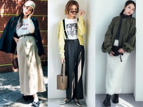Tシャツにさらりと羽織れるMA-1をチョイスして、寒い日もカジュアルスタイルを満喫♡ 女性らしさも忘れたくないから、ボトムにはミモレ丈のスカートを選ぶのがおすすめです。トップスをインして、ウエスト高めに着こなせば見た目の女らしさやスタイルアップも申し分なし。おちゃめな可愛さをプラスしてくれる星モチーフのカットソーは、アウターとカラーをリンクさせて大人っぽくまとめるのが正解です。