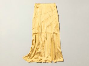 定番フレアもメタリックにすると軽やかでモードな装いに。シルバーのシャープな輝きで、鉄板のGジャン&白トップスのコーデをシックに更新できちゃいます。フレアスカートならギラギラしすぎないゆるっと感もありおすすめ。
