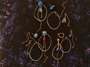 右上から、バングル ¥43,000、ピアス[フープ]¥47,000、ピアス[パール]¥54,000、ピアス[ハート]¥49,000、リング¥37,000、チョーカー¥57,000