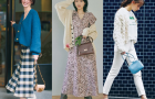 チェック柄スカートにブルーグレーのブラウスを合わせて全体をやわらかな印象に。ぱきっとしたチェック柄も淡色トップスを選ぶことでニュアンスのある洒落た雰囲気に仕上がります。カーデや小物はすべて黒で統一して、チェックやブルーグレーの色味を引き立てるのがポイント。ショートブーツは旬のエナメルで優しいパンチを。