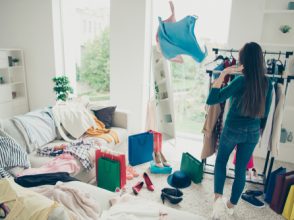 収納からあふれ出す「洋服」を例に“仕分け”のやり方をご紹介します。まず、洋服を「好き・嫌い」×「使う・使わない」で4つに分類。