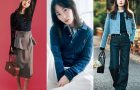 まるいフォルムがトレンドど真ん中なバルーンミニは、ブラウンジャケット×ブルーシャツの端正なベーシックアイテムに合わせることで、幼く転ばずモダンに。シアーソックスを合わせる韓国っぽい足元は、安心安定の黒からTRY! 仕上げの肩巻きニットは締め色ネイビーで大人っぽく。
