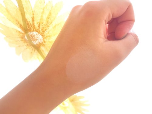 早速、手元にタッチアップしてみます。タッチアップする前は「ちょっと白くなるのかな?」と思いますが、肌にのせると、仕上がりはごく自然。ワンタップでふっと肌に溶け込んで透き通ったように自然にトーンアップ。色ムラ、くすみが補正され、ファンデのノリも格段によくなりました♪