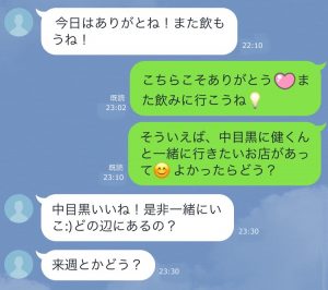 「あとは、はじめに送るLINEでは、要所要所に自分の名前を入れるようにします! “今日はありがとうございました!〇〇です”“今日はおつかれさまでした!おやすみなさい♪〇〇”など、あえて名前をいれます♪ 彼に印象を残すことが大切なので、さりげなくアピールしちゃいます!」(あやかさん)