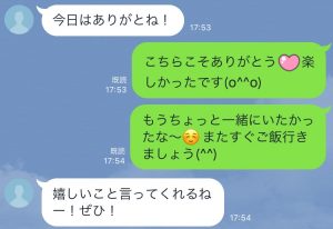 この3つの言葉。ちょっといいな、と思う人だったり、また次も会いたいな、と思うなら、この3つのワードは絶対に送っておくべき! 男性をキュンと思わせることもできます。この3つを言う事で、絶対に次も誘ってもらえます!」(さやかさん/24歳)