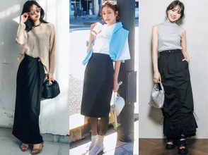 【7】シックな黒コーデを淡いピンクでやさしくトーンアップ!