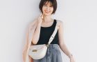 カギ針編みのニットワンピはフィットしたウエストラインで自然とスタイルアップ見え。小物は定番の黒で締めるのもいいけど、温かみのあるエクリュをリンクさせることでフェミニンかつ抜け感のある雰囲気にまとまります。