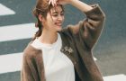 カーキのニットワンピースにエクリュのボアコートを無造作にON。仕上げはパープルのトートバッグを加えて、おしゃれっぽい差し色を効かせるのがコーデのポイント。ばさっとラフにプラスするボアコートが、今っぽいカジュアルダウンの近道です。小物は黒コンバースやバケハでコーデ全体を引き締めて。