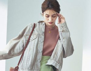 【6】定番デニムコーデは×グリーンニットで新鮮に