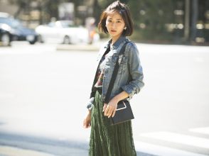 春からはTシャツやカットソーを加えて活躍させたいスカートも、この時期に着るならニットやGジャン合わせで防寒を意識。さらにダークトーンで引き締めれば、鮮度の高い冬コーデに仕上がります。小物は、ちゅるんとした質感が新鮮なビーズバッグをプラスして、キャッチーな遊び心も忘れずに。