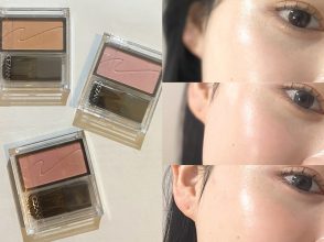 ブラウンからピンクのグラデーションになっていて、ブラウンの部分はシェーディングとしても使えます。ピンクの部分と混ぜてチークとして使うとヘルシーな肌に。ほんのりオレンジみのあるピンクなので、ピンク単色で使ってもなじみやすく、肌色問わず使える万能チーク。シェーディングは小顔効果も得られるので、全方位美顔に♡