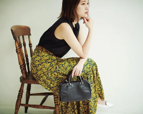 ネイビーとベージュの色合わせをよりきちんと仕上げたいときは、小物は黒で統一して。3色以上の色が集まると、コーデにまとまりがなくラフに見えることがあるので要注意。ショルダーが取れるバッグ、透け感が春らしいパンプスも、春コーデに準備しておくと重宝します」(スタイリスト・たなべさおりさん)