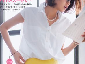 ともするとコンサバに仕上がるシャツは、カットオフの白デニムを合わせたり同系色のニットを肩掛けにしておしゃれっぽさを意識して。フレンチリネン×コットンの清涼素材とリラックス感溢れるドロップショルダーを引き立てる、こなれ感抜群のきれいめカジュアルがテーマです♡」(スタイリスト・たなべさおりさん)