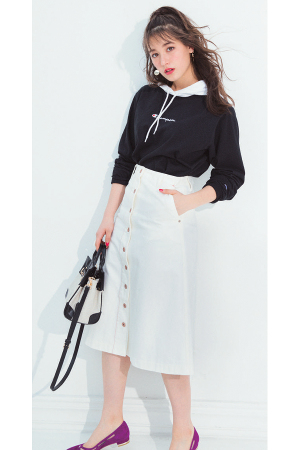 白パーカの春コーデ4選。旬スカートと合わせたガーリーな大人着こなし