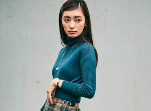 【2】タイトなリブニットでチェックスカートを大人かわいく
