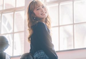 【2】ネイビーチェックスカート×ボウタイブラウスで好感度UP