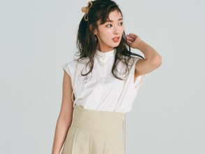 スエット¥ 4,900(UNRELISH)、スカート¥23,000(スピック&スパン ルミネ有楽町店<フリン スカイ>)、バッグ¥ 9,200(カージュ ルミネエスト新宿店<メゾンベンガル>)、靴¥5,800(コンバースインフォメーションセンター<コンバース>)、ピアス¥590(GU)