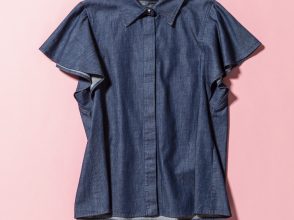 カーヴィデニムでシルエットに変化球を加えて、とことんモードに襟と袖にラッフルフリルをきかせた、モダンな甘さが大人っぽいブラウス。迫力あるワイドなカーブデニムでメリハリよく仕上げて、通なおしゃれ感を漂わせて。胸元のリボンは首の後ろで結んだり、ラフに垂らしたりと、様々なアレンジができるところも優秀ポイント♪