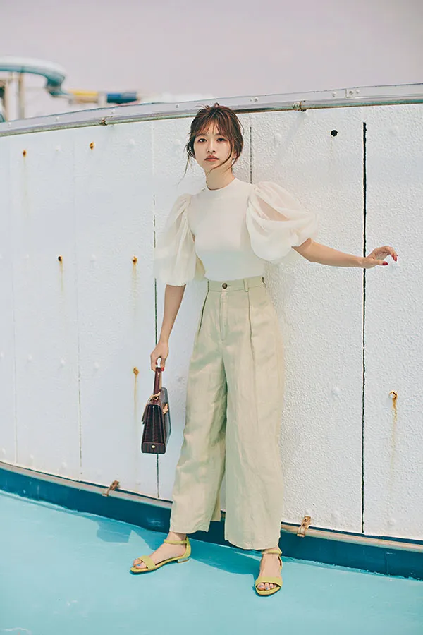 トレンドのBIGシャツは、ベルトマークでメリハリを効かせてバランスUP。ストライプ柄を選ぶだけで、ゆるさのあるシャツもすっきりシャープに。ボトムは落ち感のあるスカートを合わせれば、今っぽいリラックスムードも高まります。