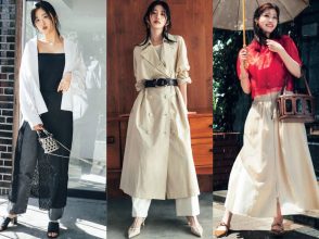 タートルニット×微光沢スカートのきれいめな組み合わせは、ブルゾンをはおって大人カジュアルに。さらに、クリアバッグやパイソン柄の靴など、エッジの効いた小物使いで今っぽさをプラスすれば、一目置かれるこなれコーデが完成します。