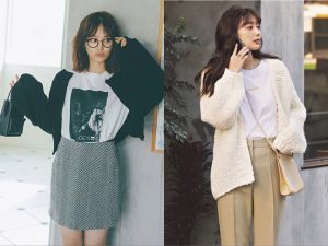 - ショート丈の白スカートはロングカーデやコートを合わせると好バランス