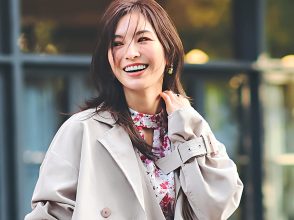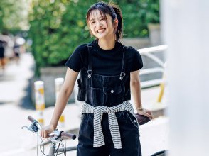 ロンパース¥8,400(MURUA ルミネエスト新宿店)、ニット¥8,500(ROPE mademoiselle/ジュン)、バッグ¥8,300(SMIR NASLI)、靴¥24,000(ハイブリッジ インターナショナル<FABIO RUSCONI>)