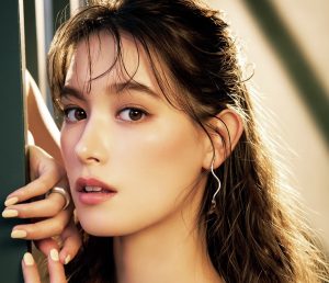やわらかいニットのようなふわっとした質感と温かみを演出する、コーラル系のパウダーチーク。ニットの色とリンクするベージュ系なら、浮きすぎず顔を明るくしてくれ、きれいなお姉さん風の優しさが宿る顔に。