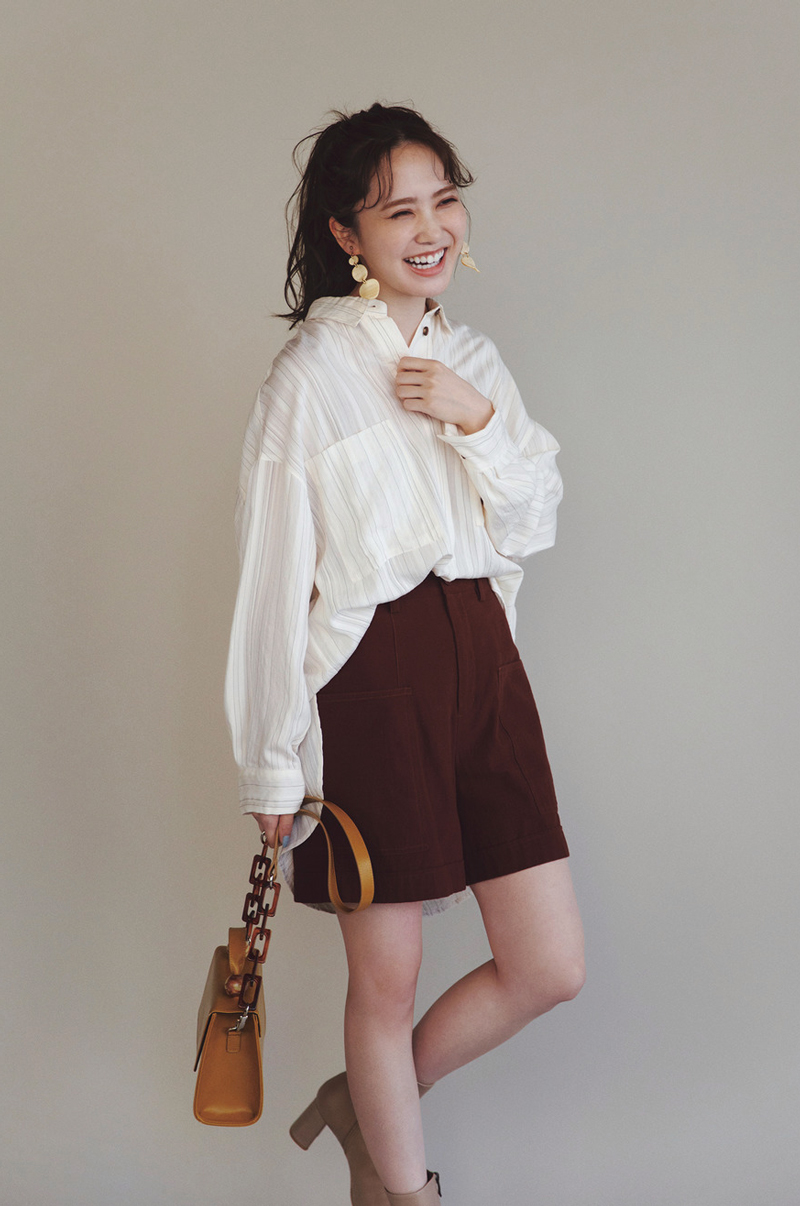 ぐっと気温が上がりそうな今日のコーデは、さらっと着られるとろみシャツで爽やか&上品に。プレーンな白シャツが一枚あれば、個性的な柄ボトムもデイリーに着こなせます。