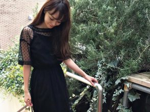 【3】ネイビーのビスチェで引き締めるレイヤードコーデ