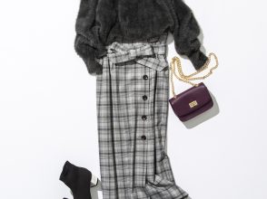 パンツ¥20,800(ショールーム セッション<サージ>)、プルオーバー¥73,000(TOMORROWLAND<ヴェロニク ルロワ>)、バッグ¥15,500(JACK of ALL TRADES<JARDIN DEL CIELO>)、靴¥7,398(ザラ・ジャパン<ザラ>)、イヤリング¥7,000(アルアバイル<マリオン・ゴダール>)