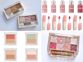 デパコスにも負けない可愛いさで人気の「シングルカラーアイシャドウ」。可愛いクリアの容器に入った春の新色は、大人女子好みのピンクや上品なパールカラーが登場です。トレンド感のあるくすみピンクやシアーなマットレッドを組み合わせれば、甘すぎない深みのある大人な目元が完成。キラキラ感をプラスしたい時は、透け感ラメをON。万能ベースカラーのパールベージュはどんなカラーともマッチして、目元を明るく仕上げます。自分好みの色だけをチョイスして使えるシングルアイシャドウだけど、このお値段なら全色揃えたくなる!