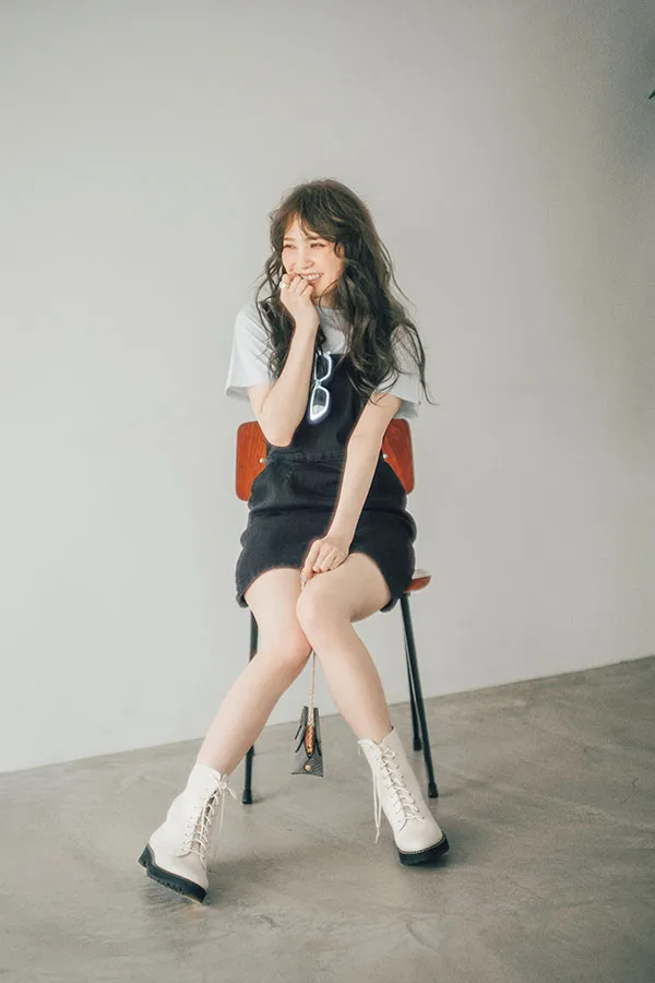 【2】デニム素材のキャミワンピが映える甘めカジュアル