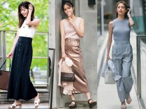 この夏の本命ロングスカートを、カジュアルに女らしく着こなすなら? 今季人気のメタリックスカートやスポーティなラインスカートなどトレンドのロングスカートを取り入れた最旬スタイルをピックアップ。「デート」「休日」「通勤」のシーン別にご紹介していきます。