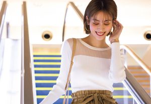 【5】タイトニットとフレアスカートで女っぽシルエットをメイク