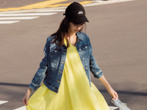 【9】黒サンダルやGジャンでワンピコーデがこなれる
