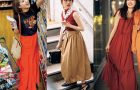 【6】フリルブラウスに赤キャミワンピを重ねるレトロコーデ