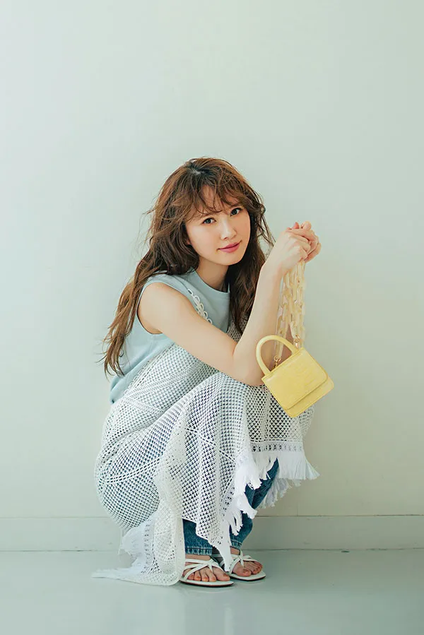 【5】フェミニンワンピにメッシュバッグで夏らしさを