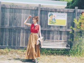 休日のお出かけは、“きゃみたん”ことキャミやタンクを使って程よくきれいめな着こなしに。ベージュのロングスカートに赤を効かせた夏コーデは、男女ウケが狙えます♡ 海沿いのレストランやおしゃれにカフェに映える、赤キャミもポイント! すっきり見えるトップスINなら、ぺたんこサンダルでもバランスよくきまります。
