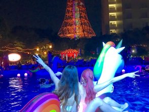 かわいい写真&ムービーを撮るために来るナイトプール。だからこそ、水着もそれぞれおしゃれ! 次回のスナップもお楽しみに♪