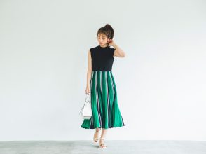 キャミソール¥13,000(HAUNT代官山/ゲストリスト<HAUNT>)、下に着たタンクトップ¥3,800(FRAY I.D ルミネ新宿2店)、手に持ったカーディガン¥4,538(_A Amel)、パンツ¥2,990(earth music&ecology 新宿ミロード<earth music&ecology>)、バッグ¥8,000(キャセリーニ<キャセリーニ>)、靴¥13,800(サン・トロペ コーポレーション<HIPS>)、ネックレス¥32,000(ヴイエー ヴァンドーム青山 有楽町マルイ店<ヴイエー ヴァンドーム青山>)、バングル¥15,500(アビステ)、リング¥28,000(エナソルーナ神宮前本店<エナソルーナ>)