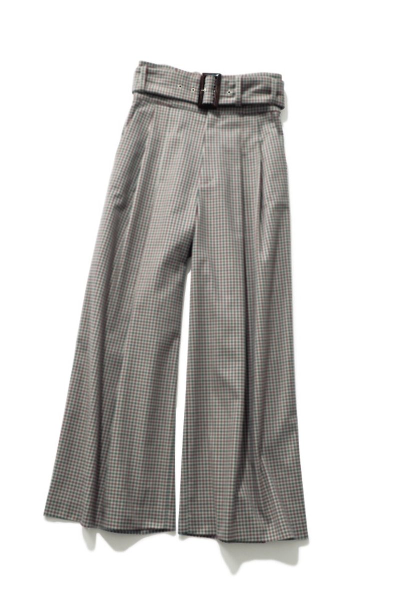 トレンドのチェック柄を大人っぽく取り入れるなら、秋色のフレアパンツがおすすめ。脚長効果も期待できるハイウエストで、スタイルのよさもアピールできます!