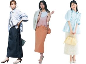 ゆるっとしたシャツとラフなジャンスカでエフォートレスな女らしさを。メンズっぽいストライプのビッグシャツをはおるだけで、シンプルなジャンスカの鮮度がUP。カリっとした辛口小物を合わせてキレよくまとめれば、洗練された大人カジュアルに仕上がります。
