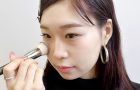 「パウダーハイライトは付属ブラシで目頭から下まぶたに沿って頬方向へ。外側に広げすぎないように。塗りやすい形状のブラシも便利。最後に目尻にも部分的にのせる」