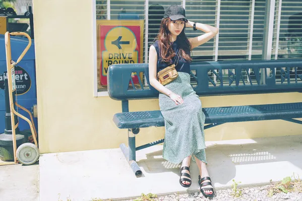女らしいラメ×ベージュのノースリニットは、存在感はありつつも柄モノにスッとなじむ万能アイテム。古着屋さんにあるようなヴィンテージライクなスカートを合わせると、どこか懐かしい趣のある着こなしが完成します。