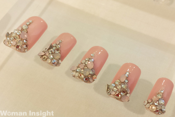 ■Divine(神々しさ)……ブライダル・テーマのボックス。ネイルカラーは淡いピンクで、爪の根元部分にびっしりと敷き詰められたピンクやホワイトのクリスタルに目を奪われます。