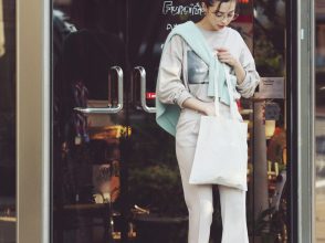 濃い色のトップスで引き締めるのもありですが、今季は白やラベンダー、ベージュなど淡色のトップスと合わせて優しい雰囲気に仕上げるのがトレンド。トーン違いのピンクトップスや小物を合わせるワントーンコーデもおすすめです。