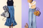 大人っぽいバックシャントップスは、深みのあるインディゴデニムですっきり大人に着こなして。巾着やトングサンダルでミニマルに合わせるとコーデの洗練度がアップします!