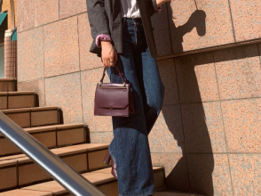 バッグにはパイソン柄を取り入れてアクセントにしました。アニマル柄は強めな印象になりがちですが、ブラウンやダスティピンクなどのくすみカラーで柔らかい印象に!