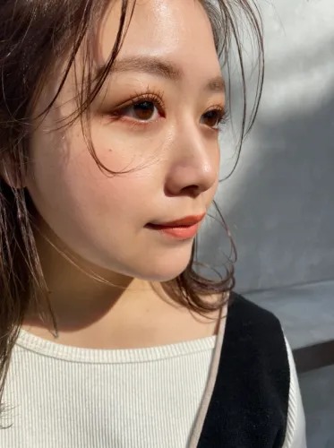 「カットはリップラインの平行切りっぱなしボブ。カラーは地毛。スタイリングはストレートアイロンを軽く通したあと、オイルをなじませます。後れ毛やもみあげ部分を出さず片耳にしっかりかけることで、さっぱり&クリーンな印象に! 肌寒くなってきたこの時季のカラーは、ややダークなトーンが人気。さらにスタイリング材の質感で色の見え方も変わってくるので、その日の気分で、すごくウェットにしたり、逆にドライにしたり…いろんな表情を楽しんでもらうことができます♡ また、ストレートアイロンやコテで巻きやすい長さなのでアイロンワークが苦手な方にもおすすめです」(by 津田 恵さん)