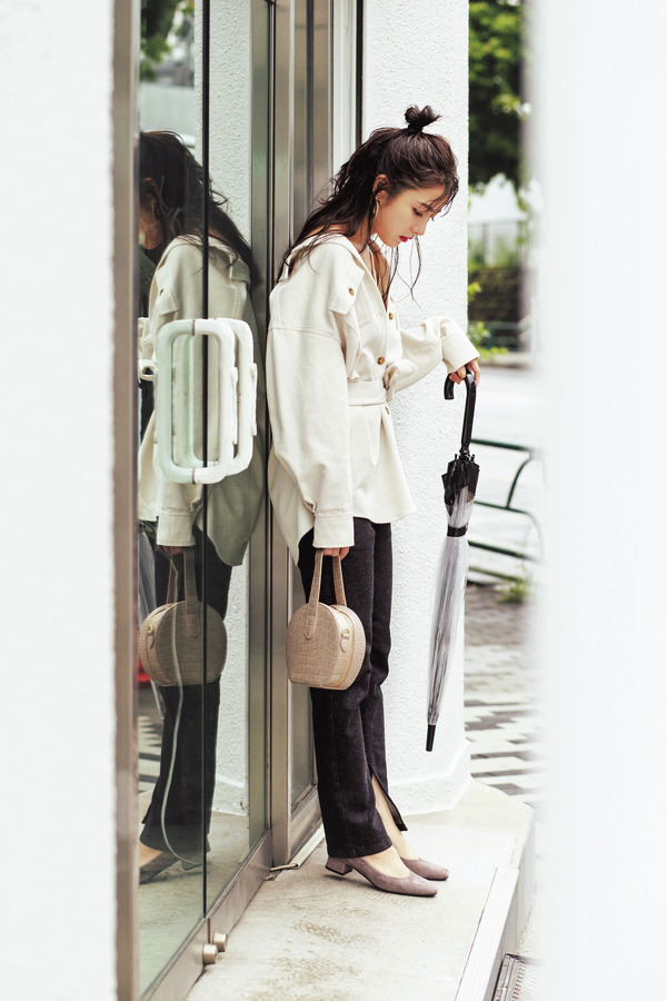 自然とお仕事スイッチが入るダブルジャケットは、この秋ヘビロテしそうな本命アイテム。インナーの着こなしを優しい白でつなぎつつ全体を淡いグラデーションでまとめると、今の空気感をたっぷり含んだ感度高めのきちんとスタイルが完成します。